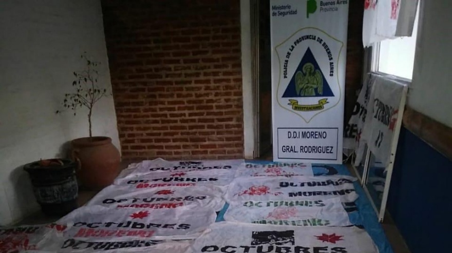 En los allanamientos realizados, se secuestraron 30 banderas partidarias con las leyendas "Octubres Moreno" y "Walter Festa 2019", dos notebooks y cuatro celulares. Tanto los detenidos como el material secuestrado fueron puestos a disposición de la Unidad Funcional de Instrucción (UFI) número 8, del Departamento Judicial local, a cargo de la fiscal Gabriela Urrutia.