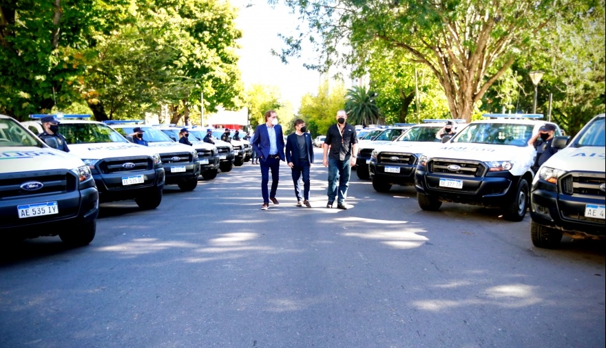 El gobernador de la provincia de Buenos Aires, Axel Kicillof, encabezó junto al ministro de Seguridad, Sergio Berni, y al intendente de La Plata, Julio Garro, el acto de puesta en funcionamiento de 60 nuevas camionetas que serán destinadas a fortalecer las tareas de patrullaje en el municipio.