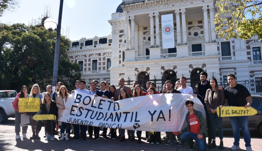 Militantes de la Juventud Radical de la Provincia de Buenos Aires y autoridades partidarias de la UCR, reclamaron al Gobernador Axel Kicillof el pago pendiente y la ampliación del Boleto Educativo Especial para estudiantes en una movilización en la ciudad de La Plata.