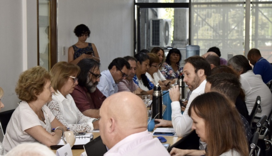 El ministro de Hacienda y Finanzas, Pablo López, se reunió con autoridades de los gremios que representan a las y los trabajadores docentes a quienes les presentó una propuesta de suba salarial promedio de 40% hasta julio de 2023.