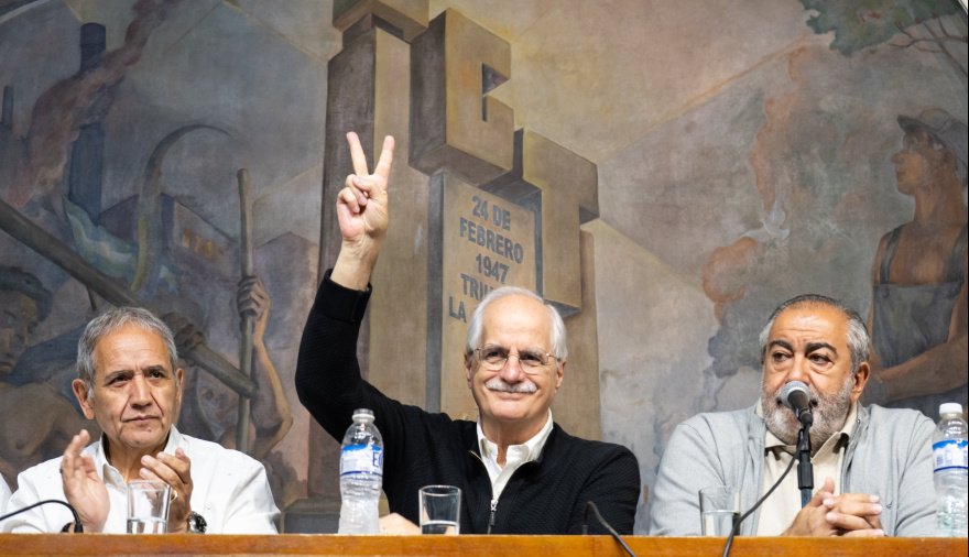 La CGT realizó un acto en su sede junto al primer candidato a diputado nacional por la provincia de Buenos Aires de Fuerza Patria, Jorge Taiana, donde llamó a votar por el peronismo en las elecciones del domingo 26 y criticó la reforma laboral que el presidente Javier Milei volvió a anunciar.