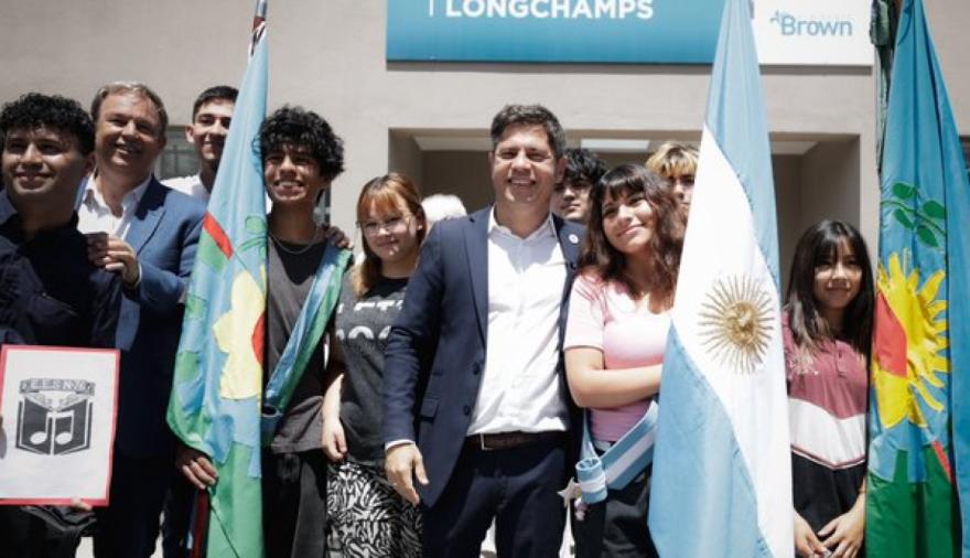 En plena pulseada presupuestaria con la Casa Rosada por la paralización de obras en la provincia, el gobernador Axel Kicillof inauguró este miércoles un jardín de infantes y el nuevo edificio de la Escuela Secundaria N° 76 del municipio de Almirante Brown. El acto se realizó junto a la directora general de Cultura y Educación, Flavia Terigi; el diputado Mariano Cascallares y el intendente interino Juan José Fabiani.